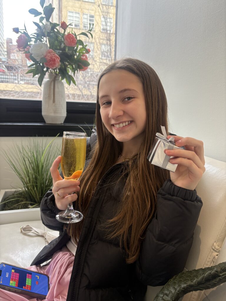 Well, it happened. We have two teenagers. We celebrated Lauren’s birthday after Christmas with her “ideal day.” Breakfast a Hymies, a facial (her first), a manicure, lunch at Chipotle, shopping on Walnut Street, dinner from Taqueria Amore, and a chocolate matcha cake from A La Mousse. Perfection!