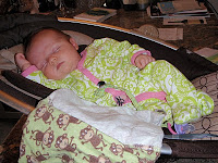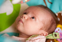 Sophie isn’t quite smiling on purpose yet – but we’re working on it. Here she is alert and looking around, which is darn cute even if she’s not smiling.
