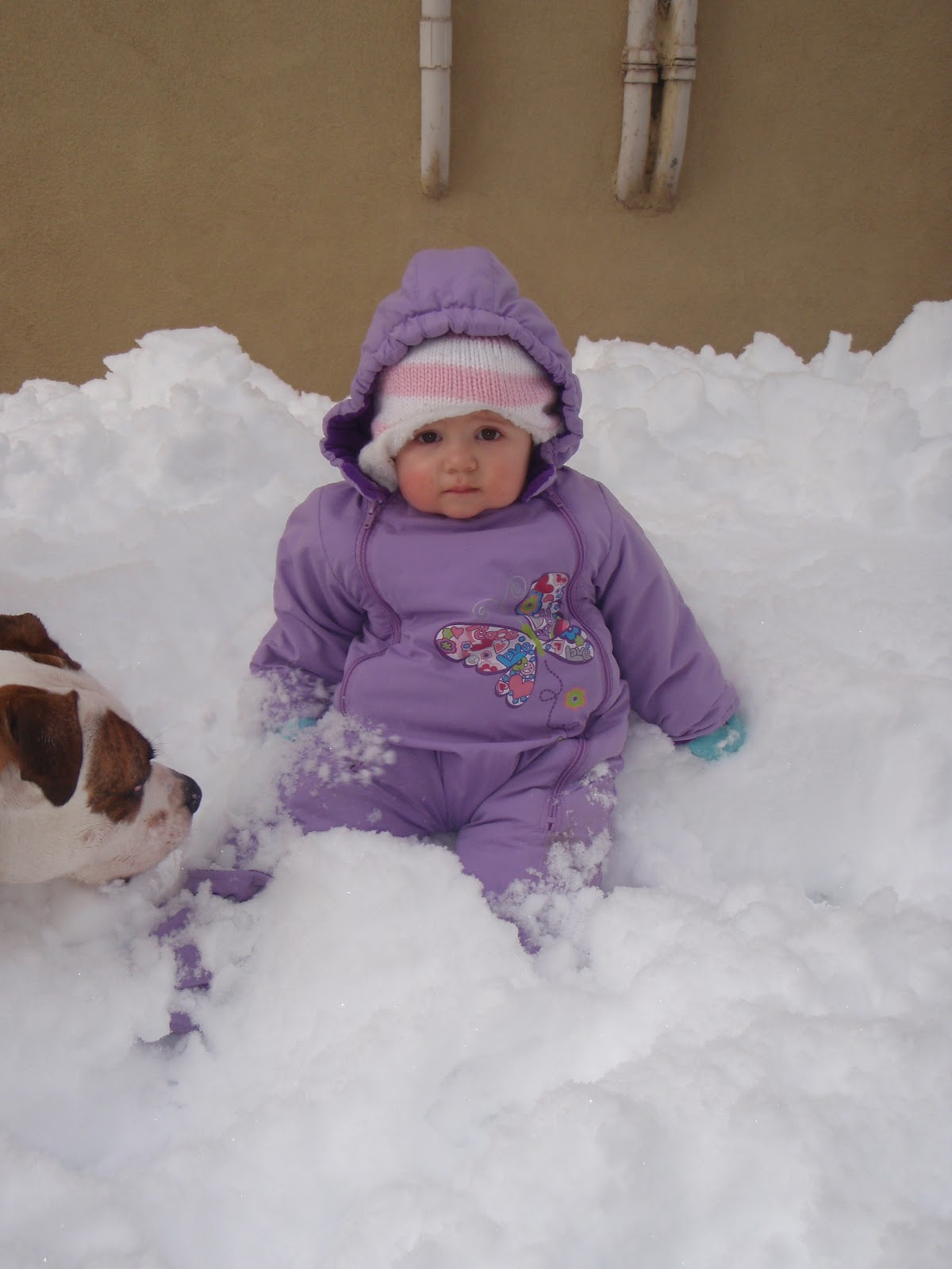 We got a foot of snow last night and since Sophie got a new snow suit for Christmas we decided to venutre out (well, venture outside the front door at least). While Dave shoveled the street, we did some exploring along the street.