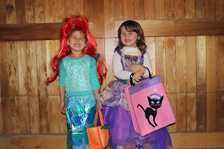 Claire (Ariel), Liora (a flapper), Sophie (purple princess), Ilan (clown), Emma (crab)