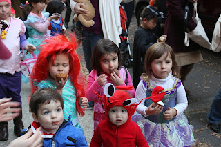 On Sunday there was a Halloween parade in the neighborhood. The kids paraded up a few of the streets, where neighbors went all out with cupcakes, candy and ice cream. It was a sugar free-for-all.